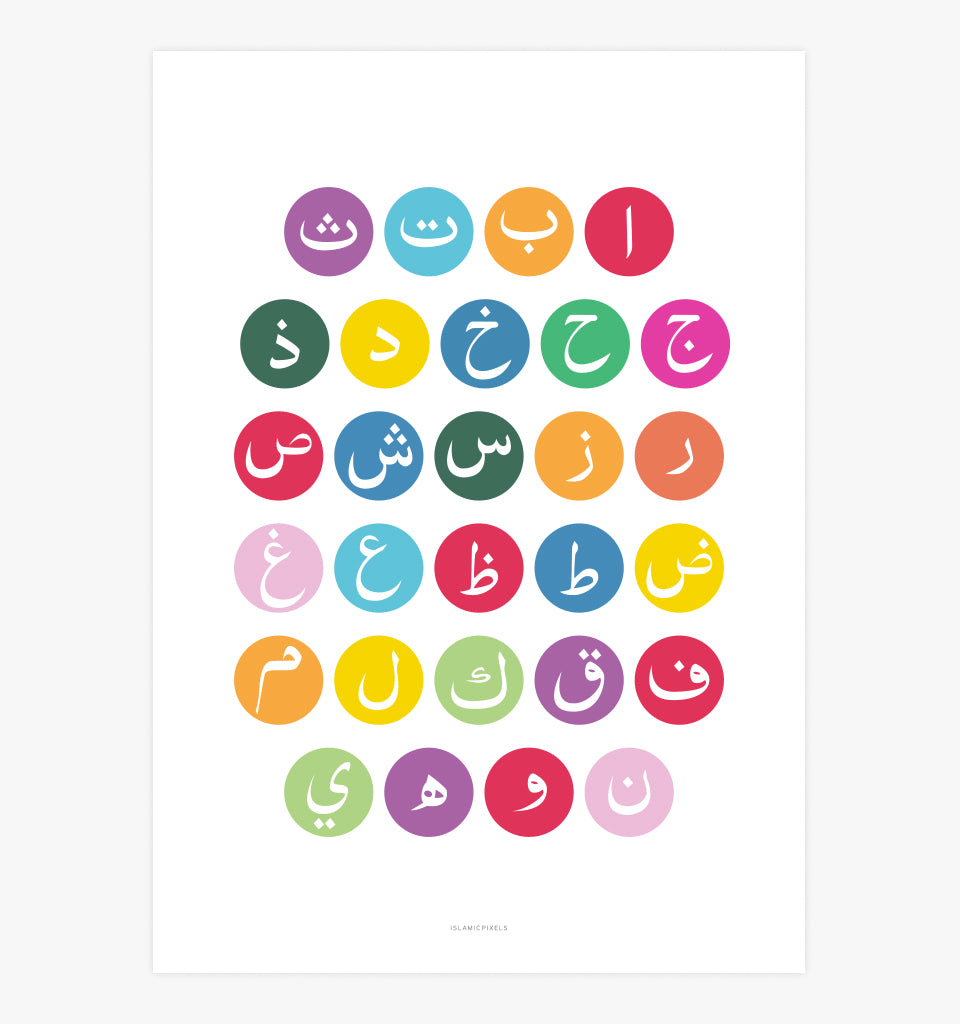 A best seller, our lovely colourful 'Alif Baa Taa' print complete with frame is the perfect way to brighten up your child's bedroom or playroom walls. Our frame would look equally great in a grown up space and would make an ideal gift for a new baby or for a little one's Eid present.