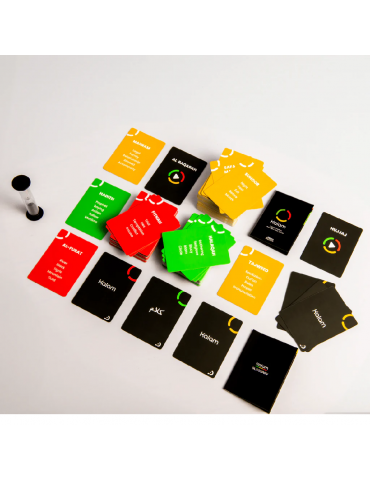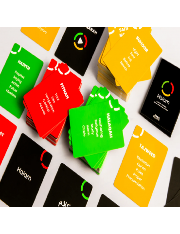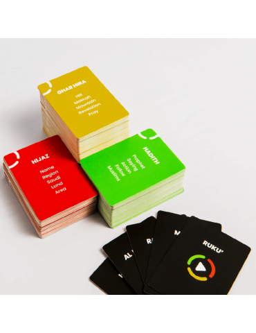 Elevate gatherings with knowledge! This fun and competitive word game is designed to enhance your Islamic vocabulary. Whether you are a scholar in town, or trying to revive the scholar in you, or want to simply have fun - this game will surely ignite the light in you and those around you. The game contains 200 cards and 3 levels of difficulty. Pair up and describe the bold word on the card all the while avoiding the list of forbidden words! You may put your acting skills to the test with the bonus and action cards! Remember, each round has 60 seconds.