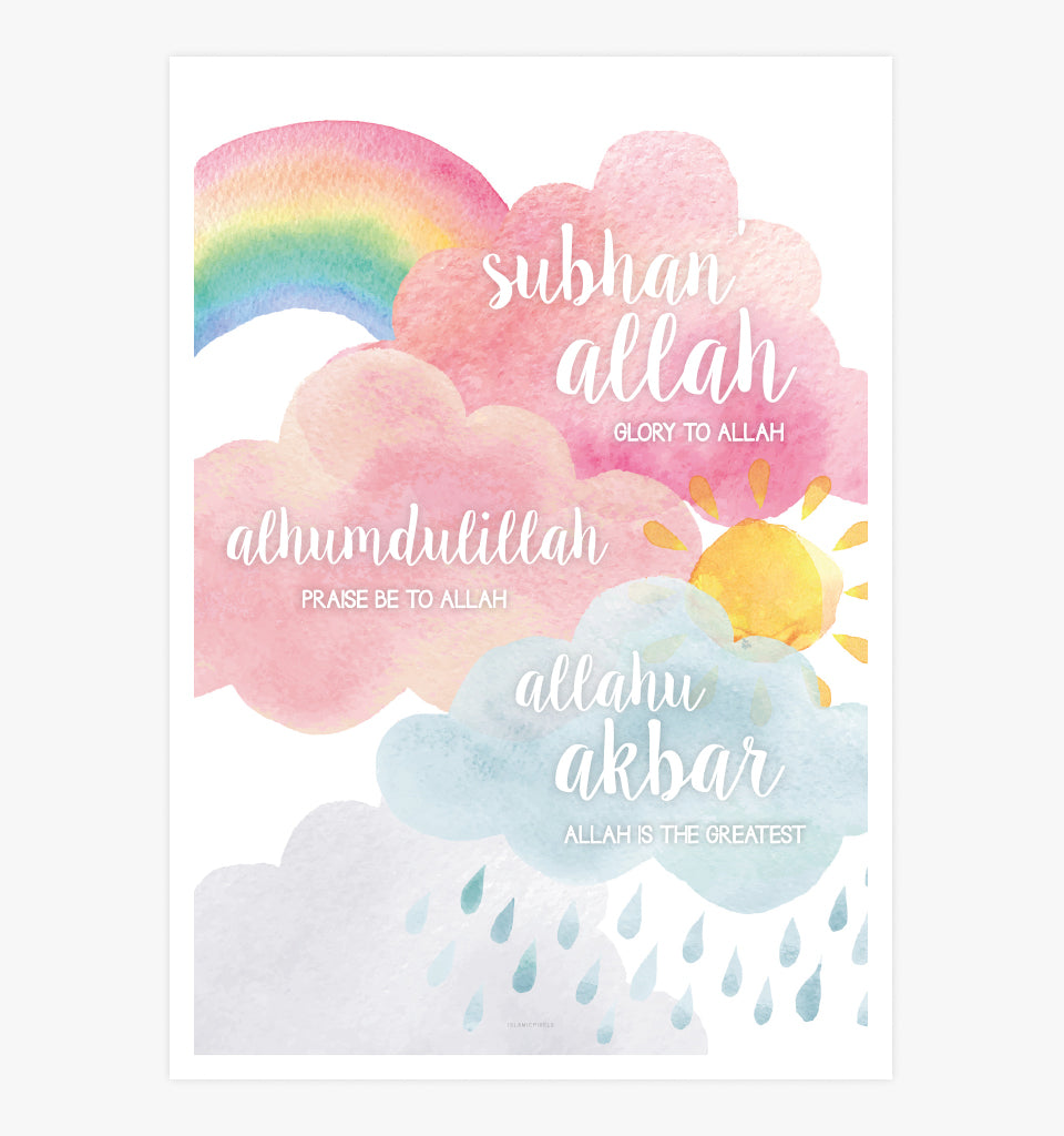 3 glorious phrases, Subhan’allah, Alhamdulillah, Allahu Akbar all showcased in one print, complete in a frame of your choice.