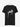 Black t-shirt with white print with round ribbed neckline and shoulder taping.