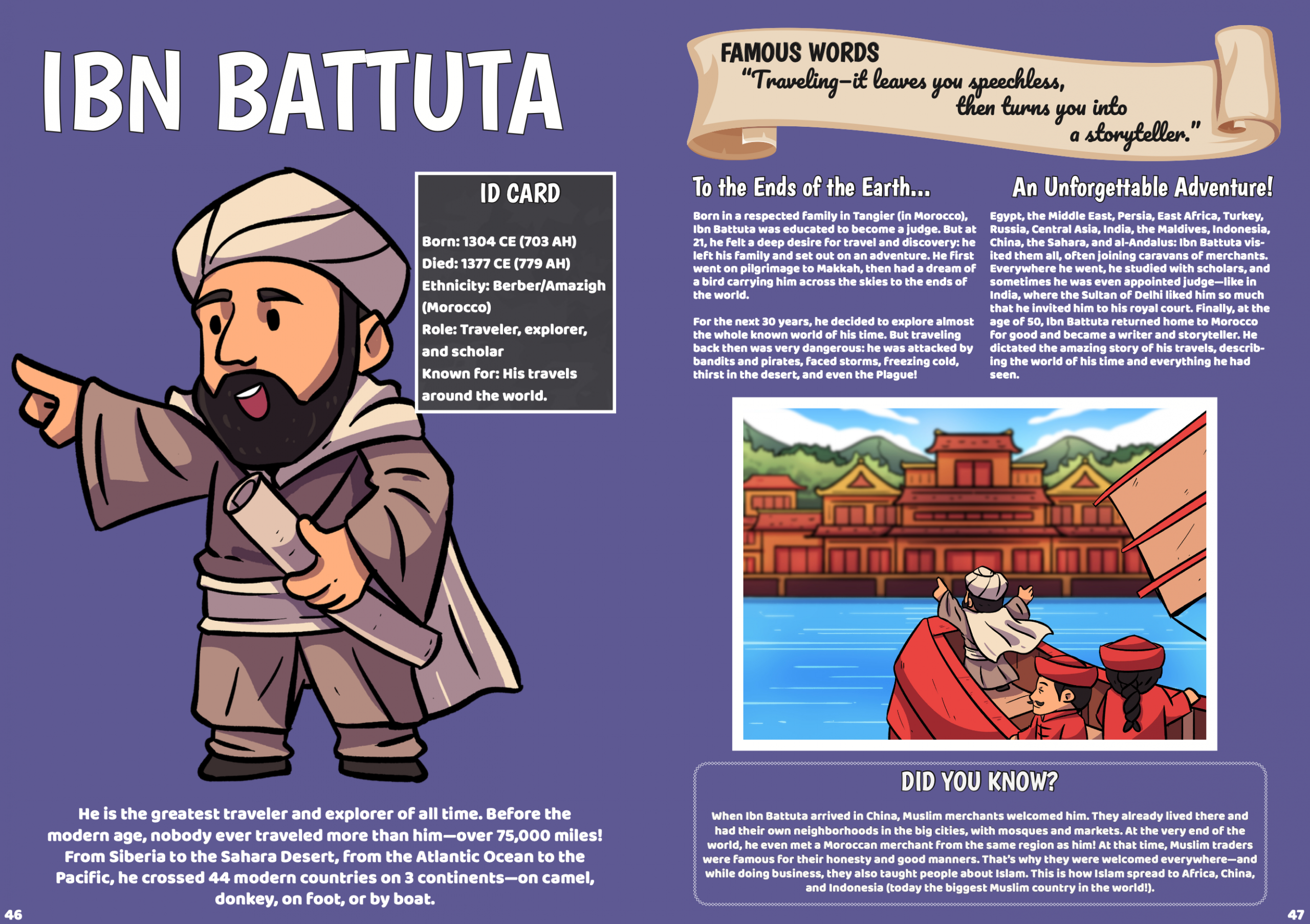 From the Prophet’s Companions and caliphs to scholars, generals, sultans, and artists — from every time and place — this book tells the stories of 30 amazing Muslim heroes who shaped the incredible story of Islam!